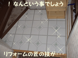 Pタイル風の床材はカミサンが